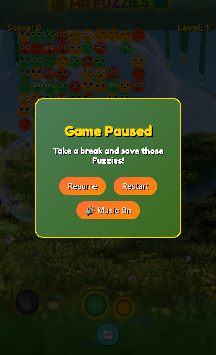 It's up to YOU to save them! As the chosen protector of the village, you have the magical launcher needed to solve this bubbly predicament. Take aim, match the colors, and launch your Fuzzy companion to create thrilling chains of three or more. With every perfect shot, you'll watch a group of Fuzzies POP in a cascade of joyful sparks, bringing you one step closer to clearing the screen and saving the day!